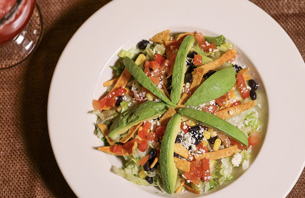 Lettuce, tomato, avocado, black bean, corn, queso fresco and seasoned tortilla strips. Ask server for dressings.