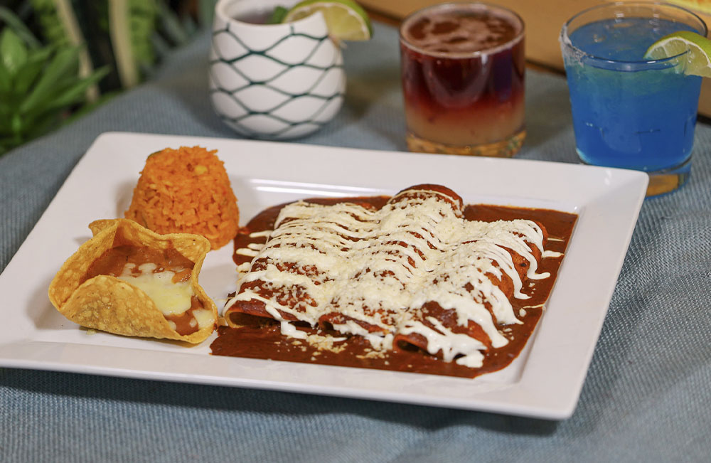 Chicken covered in our Mole Poblano. Served with rice and tortillas.