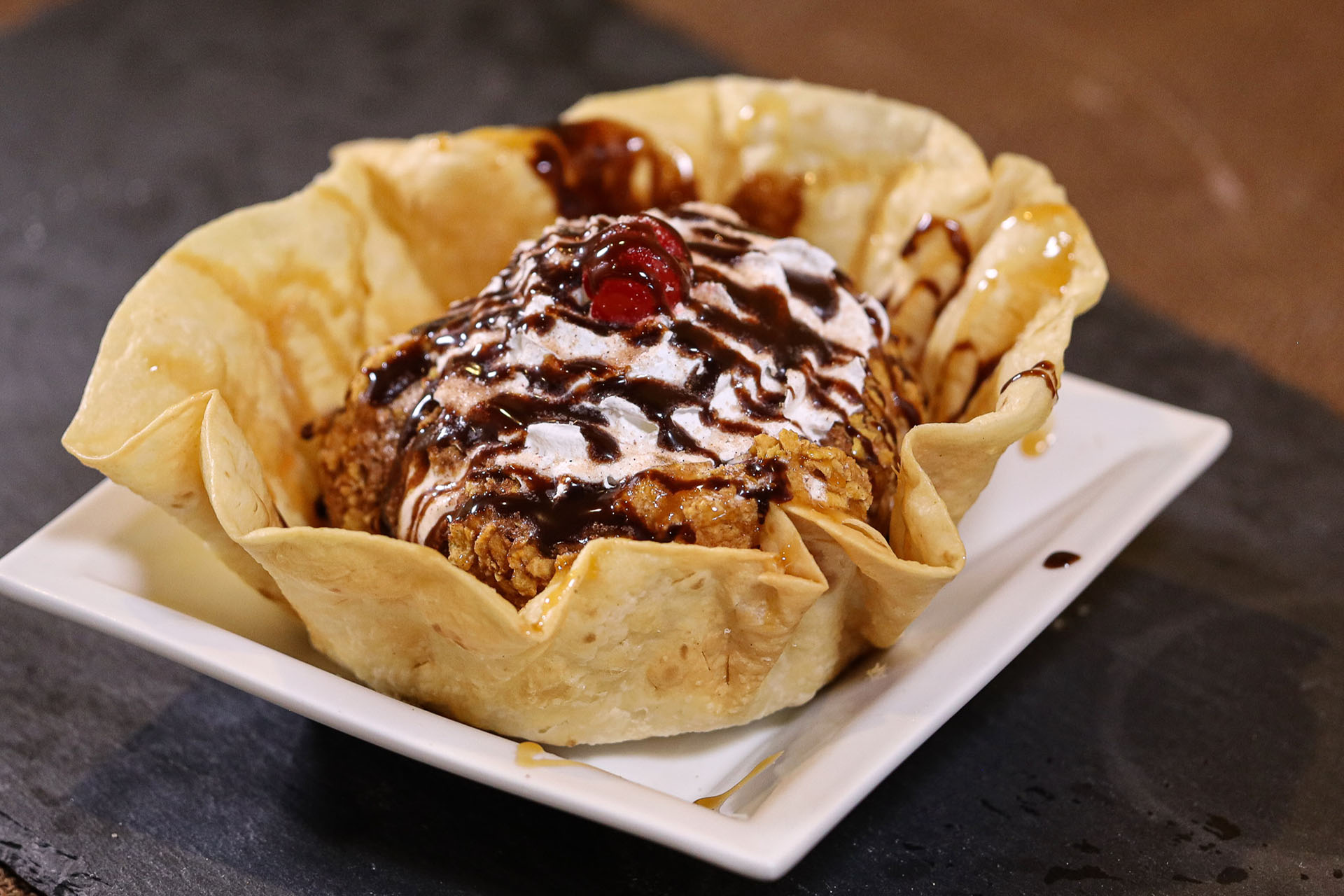 A great mix of crab meat* and shrimp rolled into a large 12” tortilla and deep fried until golden. Topped with cheese sauce and pico de gallo. Side of rice, black beans, sour cream and tomato.